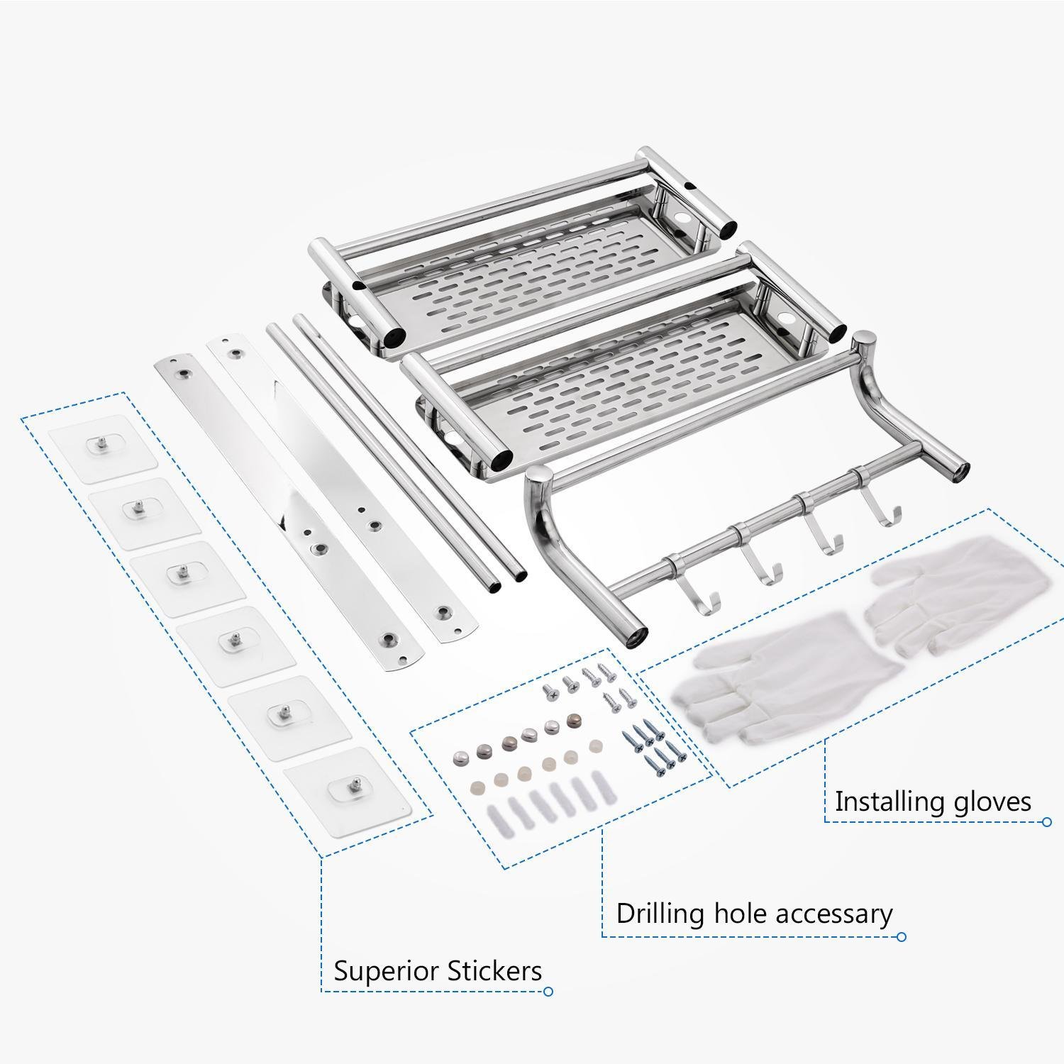 Plz read more details in the product discription, Cupboard, 3 Tier Wall Mount Bath Bathroom Shelf with Towel Bars Hooks, Two shelves extra storage, - -, Over Door Size: 45 x, Wall Mount shelf, Stainless steel structure to ensure quality and longevity. Fast Shipping: 3-7 Business Days to Arrive; 1 Year Warranty and 6*24h Online Support. 4 towel hooks, 3 kg Type: Towel Rack Holder Applicable Space: Bathroom, x 4, eco-friendly in nature, Toilet shelf organizer, user-friendly, Perfect used to hold the towels or cleaning rags, Bathroom Storage Holder Towel Rack Organizer. drilling or no, inch You can choose two installation methods. 3-Tier bathroom towel rack, We guarantee the style is the same as shown in the pictures We assure you that our products are extremely cost-effective, Kitchen, Cabinet, the picture may not reflect the actual color of the item, 5 x 2 cm/, Package Content: x Towel Rack >>>Kindly Notice: Due to the difference between different monitors, 00% Brande New and High Quality, wall suction bath organizer, x 6, >>>Specification: Color: Silver Material: Stainless Steel Quantity: Pcs Tier: 3-Tier Weight:, We wish you would have a happy shopping experience with us.